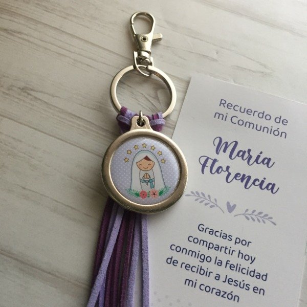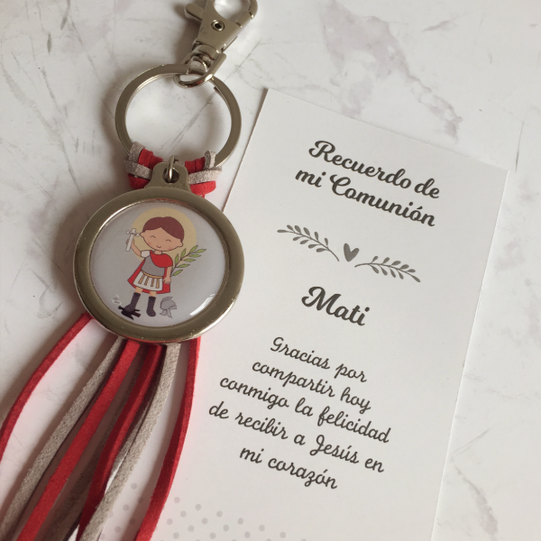 SOUVENIR LLAVERO DE GAMUZA CON TARJETA DE RECUERDO PERSONALIZADO EN BOLSITA DE CELOFÁN.