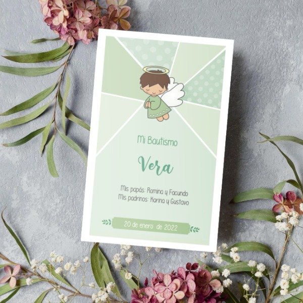Se personaliza con nombre de la beba, padres, padrinos, iglesia y fecha
