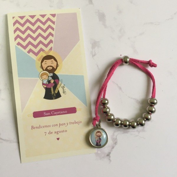REGALO Pulsera decenario de gamuza con estampa advocación