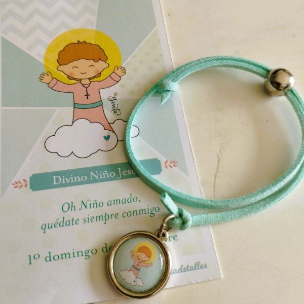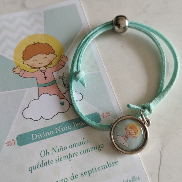 Tiento de gamuza con medallita de advocación a elección y estampa.