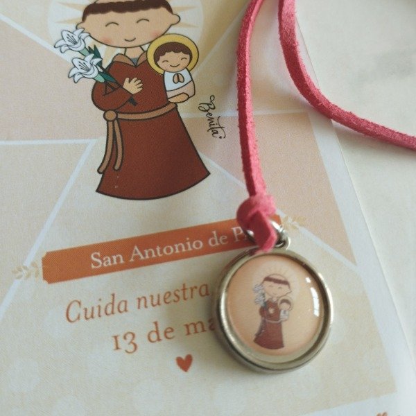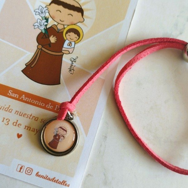 Tiento de gamuza con medallita de advocación a elección y estampa.
