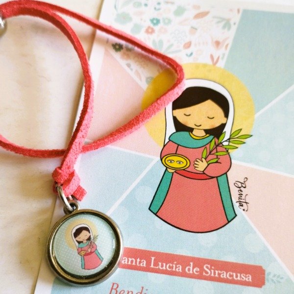 Tiento de gamuza con medallita de advocación a elección y estampa.