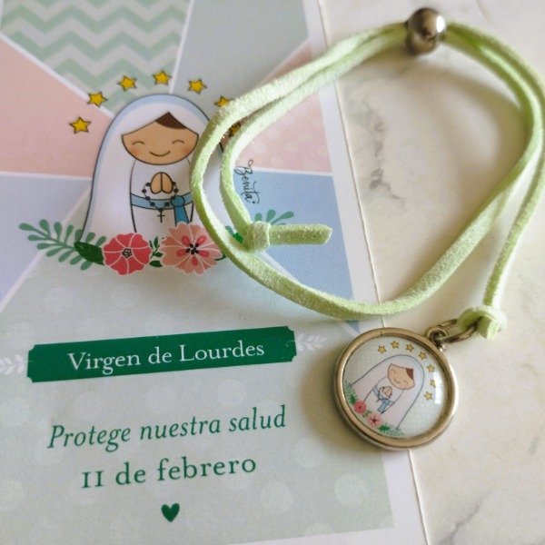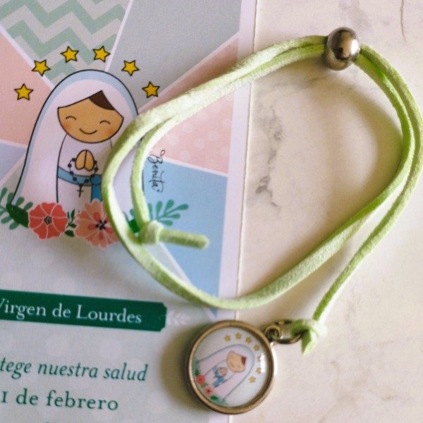 Pulsera tiento de gamuza con estampa advocación!