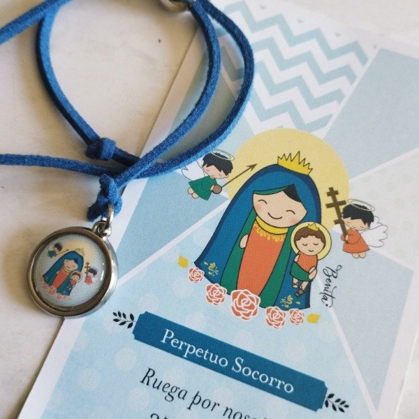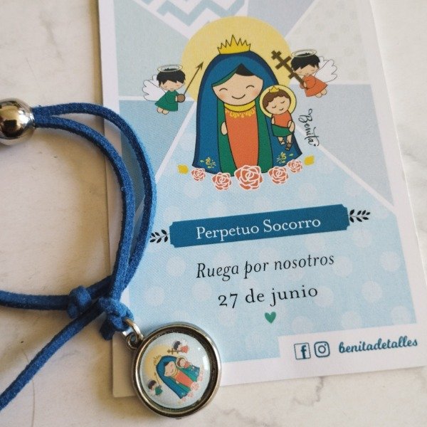Tiento de gamuza con medallita de advocación a elección y estampa.