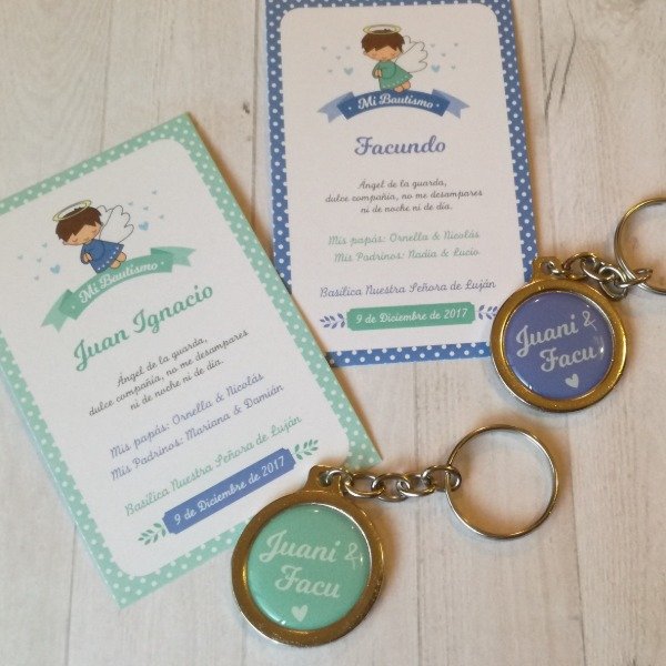 Souvenir PACK ESTAMPA CON LLAVERO CADENA PERSONALIZADO - BAUTISMO