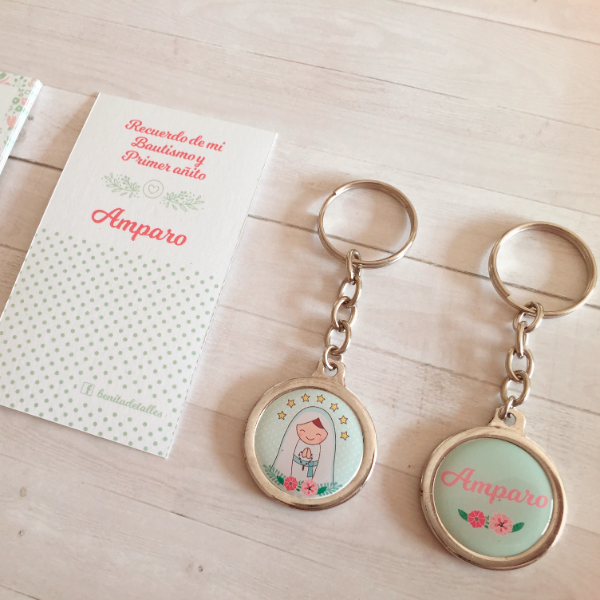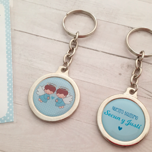 Pack Souvenir con Llavero Cadena Personalizado con nombre - Bautismo