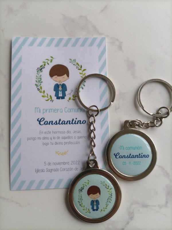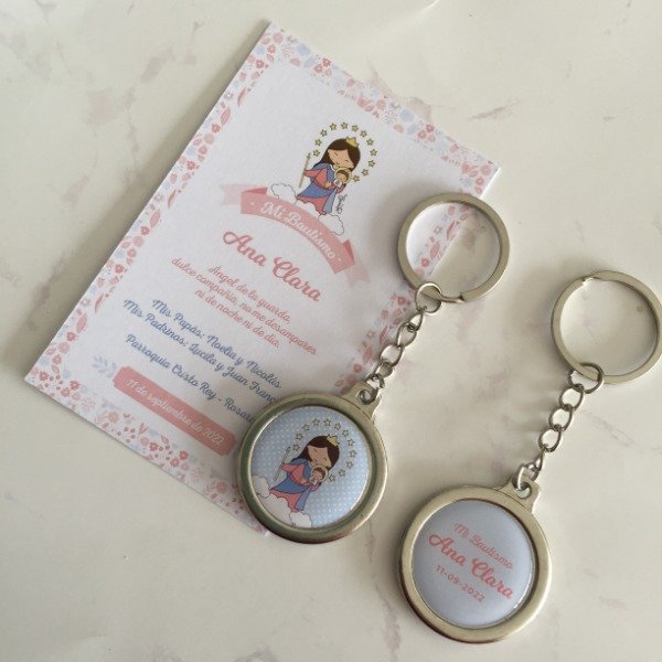 Souvenir Llavero Cadena en bolsa individual con Estampita personalizada