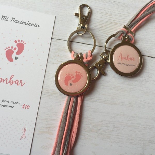 SOUVENIR LLAVERO DE GAMUZA CON TARJETA DE RECUERDO PERSONALIZADO EN BOLSITA DE CELOFÁN.