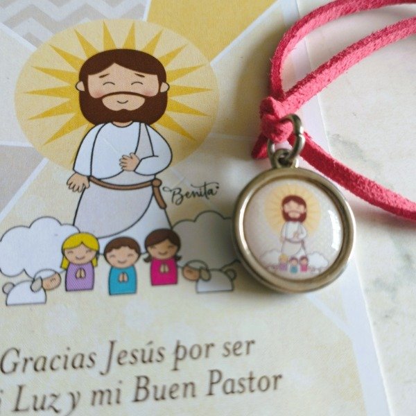 Tiento de gamuza con medallita de advocación a elección y estampa.