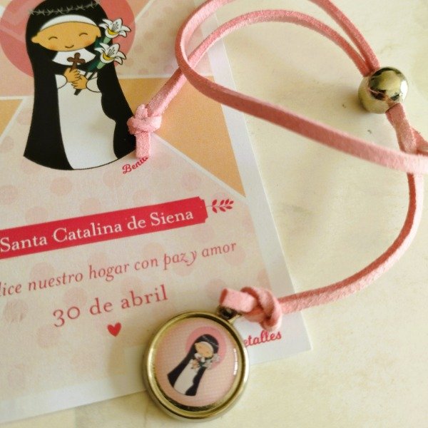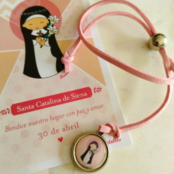 Tiento de gamuza con medallita de advocación a elección y estampa.