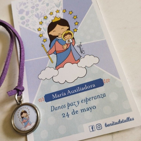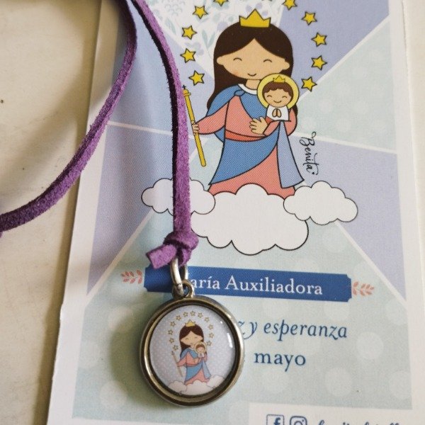 Tiento de gamuza con medallita de advocación a elección y estampa.