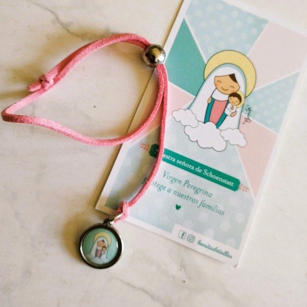 Tiento de gamuza con medallita de advocación a elección y estampa.